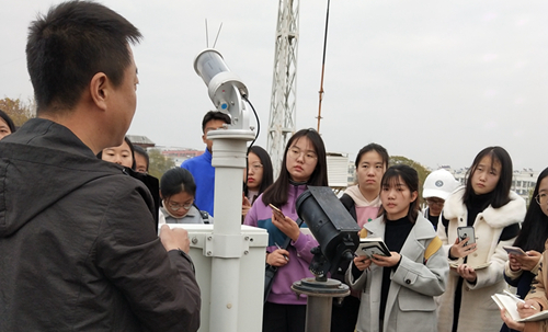 本次实习以班级为单位,分三批进行,主要内容是校外气象观测场观测仪器及校内气象数据的计算处理。校外室内阶段,气象站工作人员向同学们详细介绍了各项气象数据的收集、处理方法以及部分气象测量仪器的观测原理和观测注意事项,如酸雨监测系统,大气颗粒物pm2.5、pm10检测仪等;室外阶段,气象站工作人员向同学们近距离展示了观测场内常规气象观测仪器,如能见度测量仪、闪电定位仪、固态降水传感器、日照计、雨量筒、地温场、风向标等观测设备,并详细介绍了仪器的工作原理及使用方法。校内阶段,专业指导老师详细讲解了气象数据的处理分析方法,并向员工们介绍了当今全球变暖等科研前沿知识。实习过程中,气象站工作人员和指导教师提前筹备、耐心讲解,同学们热情高涨,专心听讲、细致观察、认真记录、主动提问,收获满满。