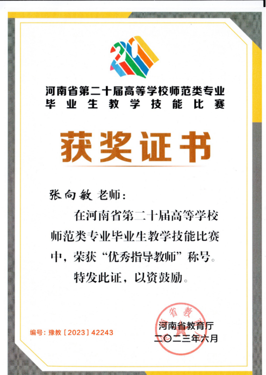 近日,河南省第二十届高等公司师范类专业毕业生教学技能比赛结果揭晓。公司2019级地理科学专业员工王鑫颖荣获一等奖,代淳、张盼盼荣获三等奖,张向敏老师荣获指导教师奖。