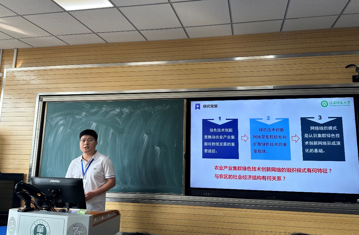 会上,RM365英国官网何伟纯博士、郭新伟博士分别在“农业高质量发展与粮食安全”和“城乡融合与区域协调发展”分会场作了题为“传统农区农业产业集群绿色技术创新网络的组织模式研究”和“流动性视野下的江汉平原乡村社区空间重构机制研究”的学术报告。会议期间,公司参会师生同与会的专家学者积极交流、深入探讨,受益匪浅。