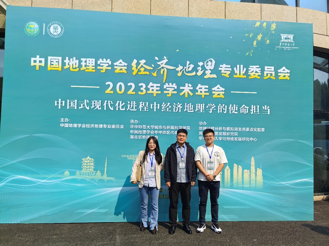 2023年10月13日至15日,中国地理学会经济地理专业委员会2023年学术年会在武汉举行。本届学术年会由中国地理学会经济地理专业委员会主办,华中师范大学城市与环境科学公司、中国地理学会华中地区代表处、湖北省地理学会承办,地理过程分析与模拟湖北省重点实验室、湖北高质量发展研究院、华中师范大学可持续发展研究中心协办。年会以“中国式现代化进程中经济地理学的使命担当”为主题。RM365英国官网青年教师何伟纯、郭新伟和研究生郭浩参加了本次学术会议。