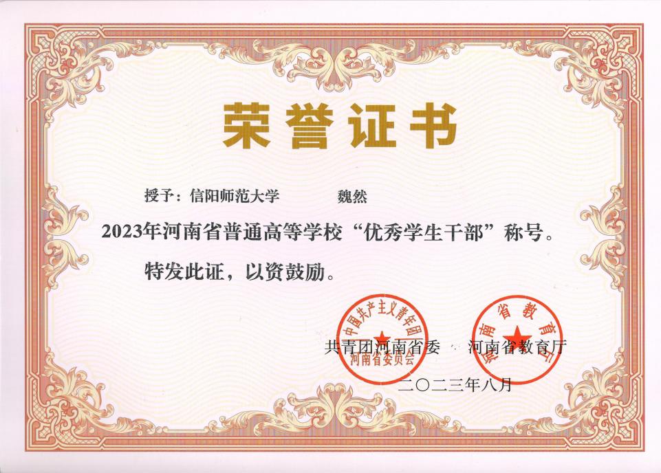 近日,共青团河南省委、河南省教育厅下发了《关于发布2023年河南省普通高等公司三好员工、优秀员工干部和先进班集体名单的通知》(豫青联字〔2023〕28号),公司研究生员工干部魏然荣获河南省“优秀员工干部”荣誉称号。