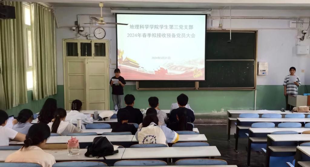 大会主要讨论能否接收杨艺、焦佳伟、李垚彤、王静帆四位同志为预备党员的问题。会议伊始,杨辉报告到会情况并宣读预备党员发展名单。随后,四位同志依次上台宣读入党志愿书,就自己对党的认识、入党动机、现实表现、本人履历等方面进行汇报,并表明坚决入党的决心。接着,入党介绍人陈柯同志向与会成员介绍培养考察过程以及四位同志在培养期间的情况,并对其能否入党表明意见。与会党员发表意见并进行充分的讨论后,对是否接收杨艺等四位发展对象为预备党员进行无记名投票表决。大会一致同意接收杨艺等四位发展对象成为预备党员。最后,杨辉对四位预备党员表示祝贺后,提出希望预备党员能够加强学习以提高自身修养,积极向党组织靠拢,牢记誓词,争做先锋模范。