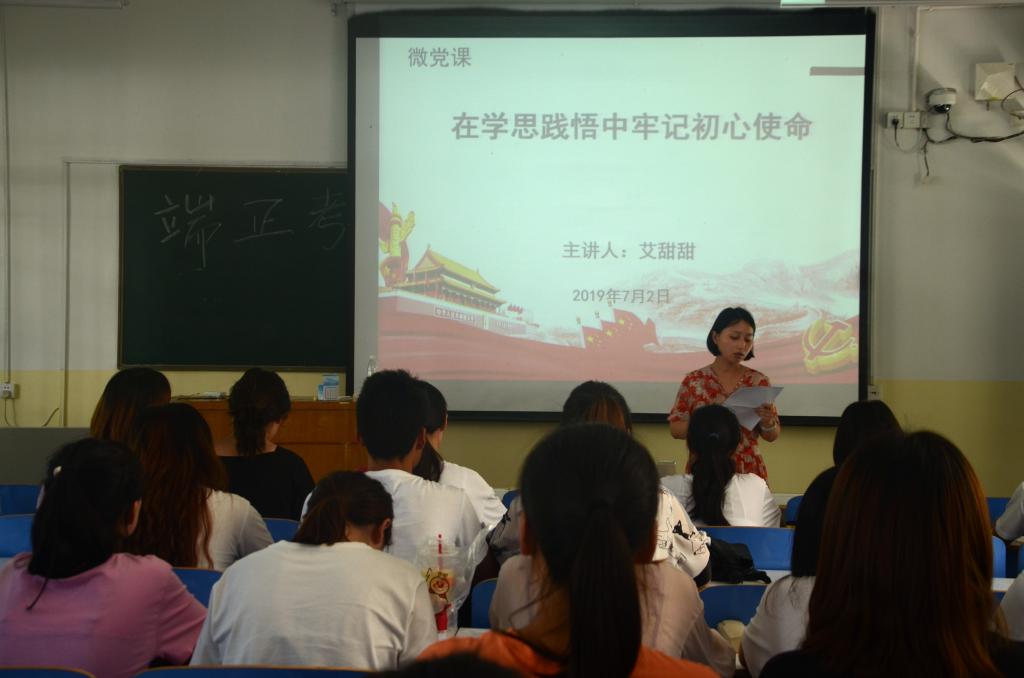 7月2日,RM365英国官网员工第一党支部书记艾甜甜同志于教三03为支部党员讲党课,主题为“在学思践悟中牢记初心使命”。员工第一党支部全体党员、入党积极分子三十余人参加了此次党课学习。