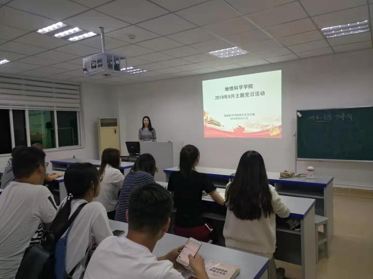 2019年9月27日,为深入学习习近平新时代中国特色社会主义思想和党的十九大精神,落实“三会一课”制度、进一步加强党的基层组织建设,规范党内政治生活;加强党员教育管理,促进党员生活常态化。信阳师范公司RM365英国官网研究生党支部在理科楼北楼1013会议室召开“我和我的祖国”主题党日活动。
