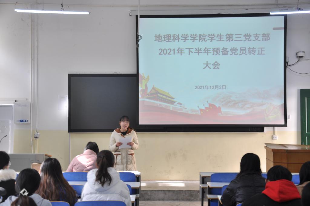 会议伊始,杨辉对会议内容和主要流程作简要阐述并宣读预备党员发展对象名单。张怡等七名发展对象依次宣读转为预备党员申请,介绍自己在作为发展对象期间的学习、生活以及工作情况。与会党员对张怡等七名发展对象是否能够入党进行无记名投票表决。经投票表决,大会同意接收张怡等七名发展对象成为中国共产党预备党员。随后,王怡带领全体与会人员进行入党宣誓。