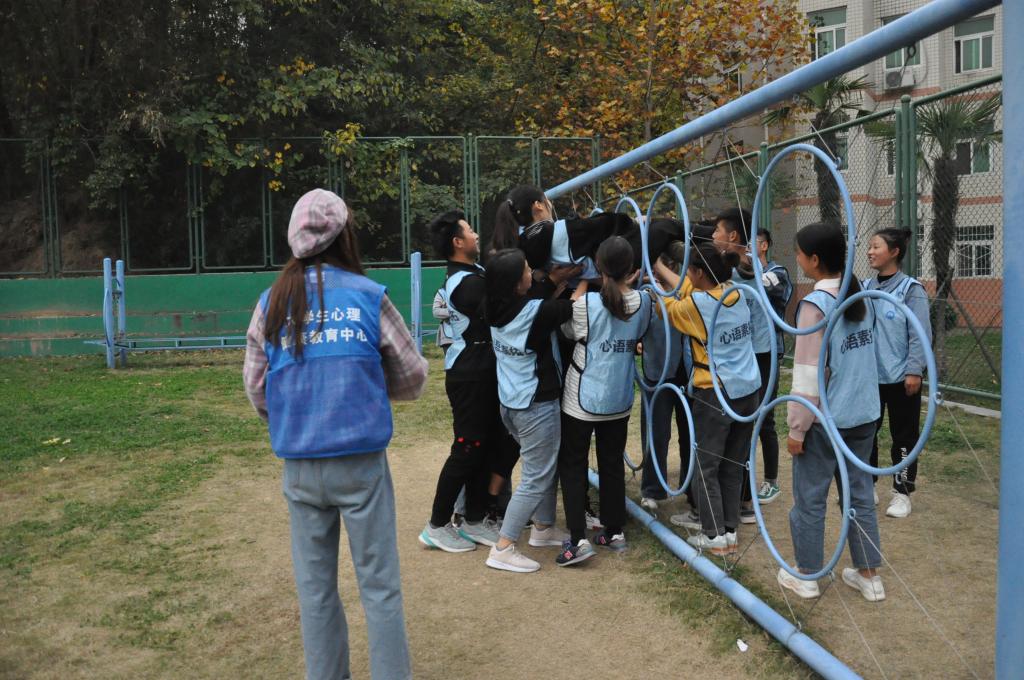 活动伊始,三位教练向同学们强调了各个活动项目的注意事项,希望同学们注意安全。随后,带队的志愿者将同学们分为三组并鼓励大家积极参与活动中。本次活动共有三个项目,每队员工轮流进行。同学们积极配合,默契协作,精彩纷呈。高空断桥活动中,同学们在教练的指导下爬上高高的桥板,于高空中跨越断桥,再从断桥上跃下,部分同学心生恐惧,停滞不前,教练悉心指导、热心鼓励,大家开始克服恐惧、突破自我。“毕业墙”环节中,为在限定时间内让所有人翻越4.2米的高墙,同学们各想奇招,用勇气、双手和信任的肩膀成功完成任务。“穿越电网”活动中,同学们齐心协力、默契配合,在极短的时间内完成了任务。活动的最后,教练以小见大,从游戏中的细节延伸到生活中人与人之间的交往,通过游戏告诉同学们为人处事的道理,让同学们受益匪浅。