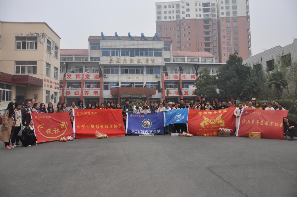 冬日暖阳,与爱同行。11月24日,由VOV背包文学社主办,谭山青年志愿者协会、老员工摄影爱好者协会、Crazy轮滑协会、1778骑行协会、心悦社团协办的敬老院、福利院关爱之旅于信阳市五星光荣敬老院、信阳市儿童福利院顺利开展,VOV背包文学社社长孟恩慧及各社团负责人与各社团部分社员一同参加此次活动。