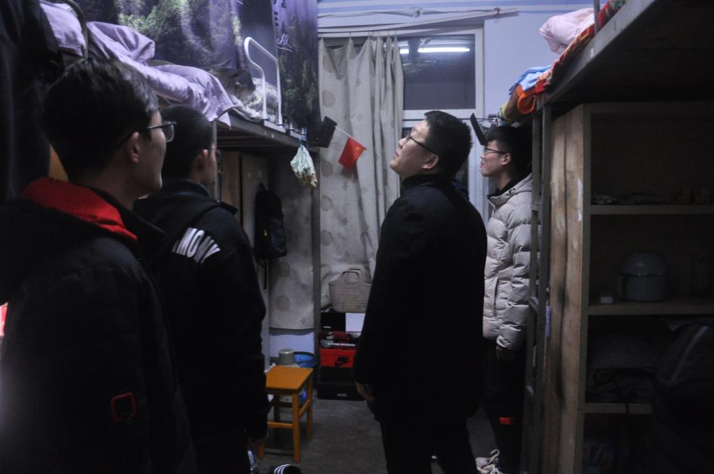 在生活部成员的带领下,曹鹏鹏首先来到男生宿舍。在走访过程中,曹鹏鹏认真查看员工宿舍内的用电安全和内务整理情况,强调员工要提高安全用电和宿舍卫生意识,营造一个良好的生活氛围。期间,曹鹏鹏就如何养成良好的生活习惯等问题与同学们做了深入的交流,并建议同学们合理安排自己的时间,在认真学习专业知识的同时积极参加社团活动,注重自身各方面能力的提高。另外,临近期末考试,曹鹏鹏告诫员工一定要认真对待,以踏实严谨的态度进入备考学习状态,做好充足的准备,并鼓励他们养成积极乐观,健康向上的习惯,期望每位员工都能有一个绚丽多彩的老员工活。晚上九点,男生和女生宿舍全部走访完毕。