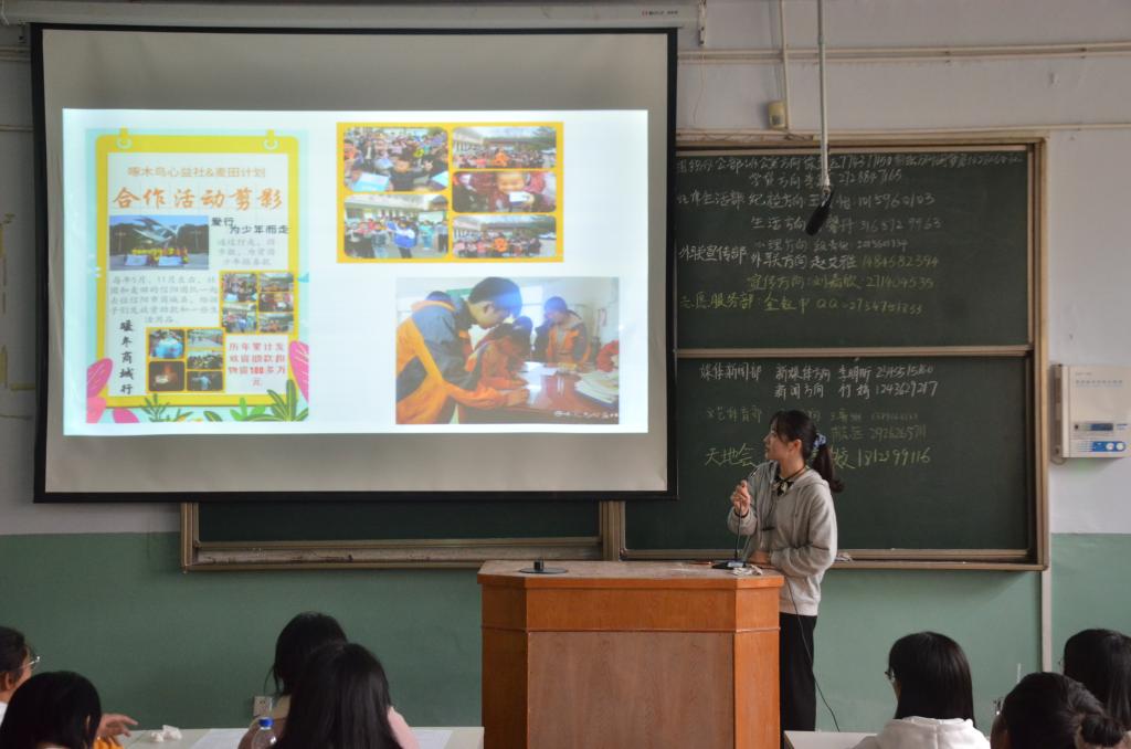 此次活动计划周全、有序开展,组织办公部、纪律生活部、媒体新闻部等六个员工会部门及天文地理爱好者协会、啄木鸟心益社、VOV背包文学社三个社团的负责人根据精心准备的PPT及相关视频向参会人员展开介绍。他们依次上台从部门简介、工作内容、人员要求等方面向新生详细介绍了该部门的具体招新情况。他们一致向同学们强调员工会是一个提升自我综合素质的平台,要敢于挑战,并欢迎在座人员加入员工会这个温暖而团结的大家庭。最后,由主席团成员向2020级新生发放申请表,并鼓励2020级新生要根据自我能力与特长积极报名参加。