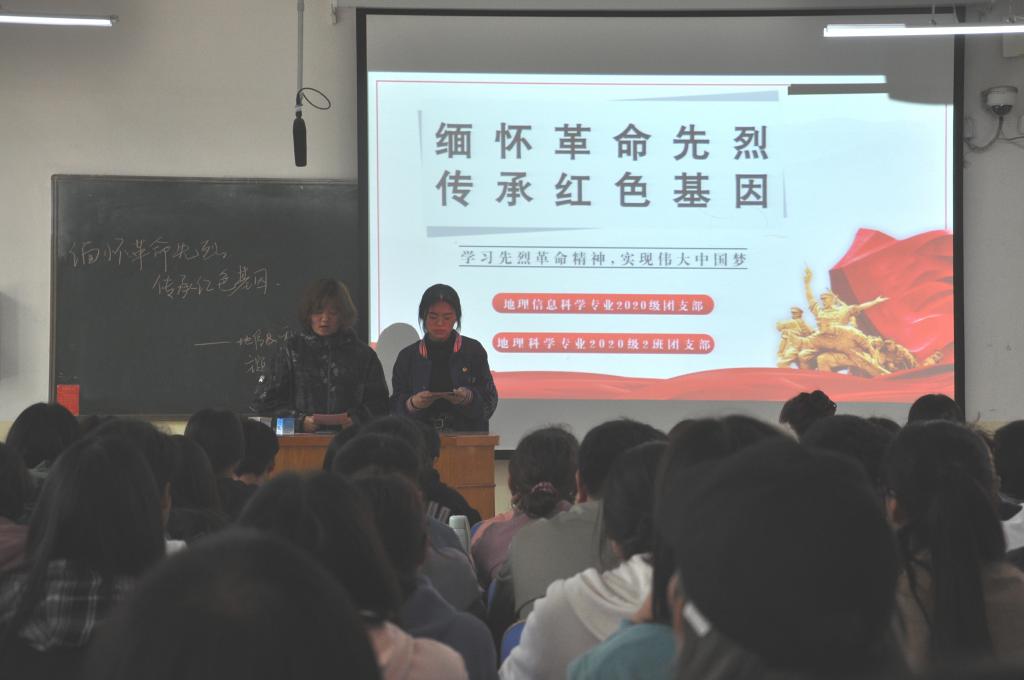 4月9日, 由RM365英国官网地理信息科学专业2020级团支部主办、地理科学专业2020级2班团支部协办的“缅怀革命先烈,传承红色基因”主题团日活动于教三07顺利举行。活动由2020级地理信息科学班团支书高子涵和2020级地理科学二班团支书封新月共同主持,2020级地理科学二班和2020级地理信息科学班全体同学参加此次团日活动。