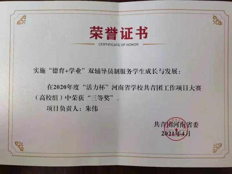 12月22-23日,由共青团河南省委主办的2020年度“活力杯”河南公司共青团工作项目大赛于黄河水利职业技术公司举行,经过现场激烈角逐,公司荣获共青团工作项目(高校组)三等奖。