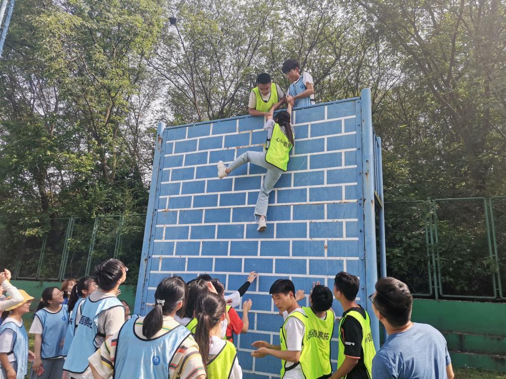 在宣布完活动流程和注意事项后,素质拓展活动正式开始。击鼓颠球游戏中,同学们各想奇招,凭借勇气和信任成功完成任务;U形乒乓球接力游戏中,同学们齐心协力、默契配合,在极短的时间内完成了任务;逃生桥项目中,同学们一同讨论对策,克服困难,突破5米高墙;信任背摔小游戏中,同学们积极参与,默契配合,在欢声笑语间拉近心理距离,增进了彼此之间的感情;风火轮游戏中,学子们在教练的指导下挑战高难度,超越自我,在缓解压力,放松自我的同时,锻炼了同学们的心理素质。最后,教练员对本次活动进行总结,希望通过此次活动,同学们能够勇于挑战自我,积极面对重重困难和阻碍,培养良好的心理素质。