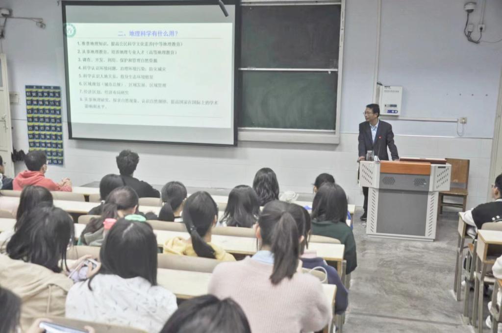 会议伊始,颜俊为同学们分析地理科学专业优势与发展前景,从地理科学是什么、地理科学有什么用、如何研究和学习地理科学等方面为同学们进行讲解。通过颜俊的讲解,同学们清楚地认识到地理科学专业的研究方向和毕业去向,了解到地理学具有的独特功能和地理学的历史使命。最后,颜俊以二十大会议中总书记的话告诉同学们人才的重要性,并为同学们送上美好的祝福。
