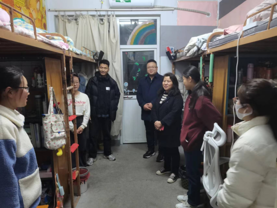 晚餐后,宋力一行深入员工宿舍,关心同学们近期的生活和学习状况,摸排宿舍安全隐患、检查宿舍卫生情况,鼓励合理锻炼、规范作息时间。以饱满的热情积极投入新学期的学习,营造良好的班风、学风、院风,展现当代老员工的良好精神面貌,在大学学习、生活中不断发展自我、成就自我。