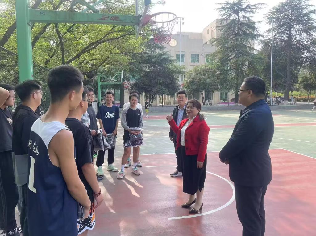 4月10日,公司篮球队在樱花球场举行队服发放仪式。公司党委书记宋力、党委副书记朱明、团委书记曹鹏鹏莅临现场为球员们发放队服。