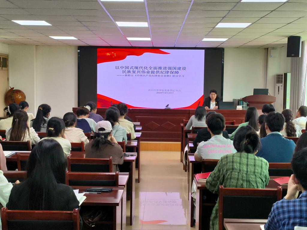 为深入学习贯彻习近平总书记关于党纪学习教育的重要讲话、重要指示精神,公司党委书记宋力以“以中国式现代化全面推进强国建设民族复兴伟业提供坚强纪律保障”为题,在理科楼南楼410为公司全体党员讲授专题党课,旨在确保每位党员都能加深对《中国共产党纪律处分条例》(以下简称《条例》)的精神实质和具体要求的学习和理解。