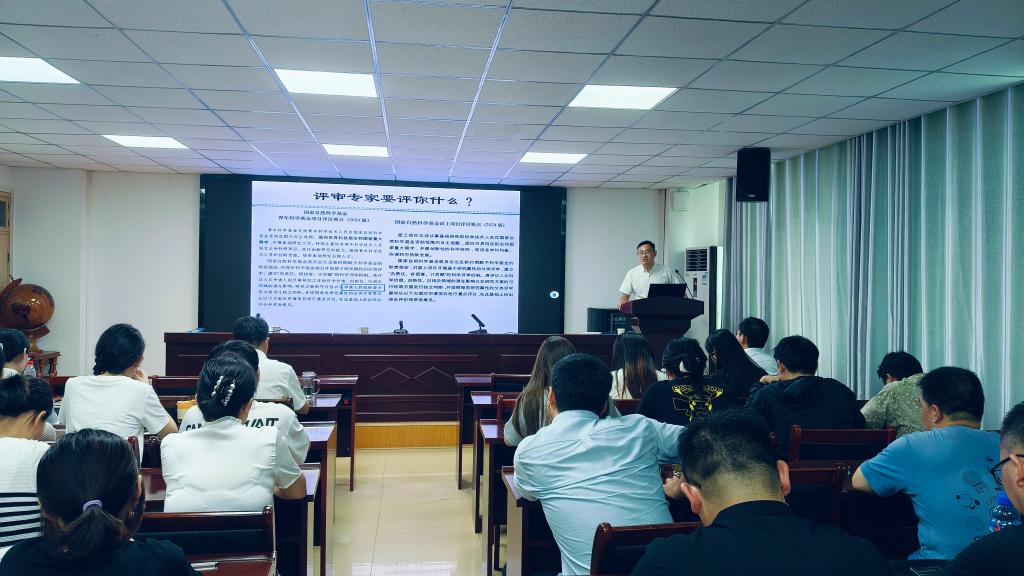 启动会后,颜伟副教授分享基金申报经验。颜老师从“评审专家要评什么”入手,归纳了基金申请书不予受理、代码选择等问题,并结合自身申报经历,就选题、立项依据、关键科学问题、特色与创新之处等方面进行了深刻剖析,系统介绍国家自然基金课题申报的要点和注意事项。颜老师最后指出,基金申报的心态和坚持非常重要,鼓励申报基金的老师锲而不舍、坚持不懈,预祝公司2025年国家自然科学基金项目申报工作取得佳绩。