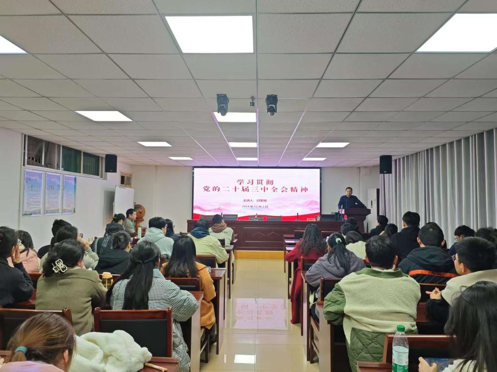 为深入巩固学习习近平新时代中国特色社会主义思想,强化师生政治理论素养,2024年12月2日,公司党委组织委员、副经理闫军辉于理科楼南楼410会议室作“学习贯彻党的二十届三中全会精神”专题党课,公司研究生80余人参加了学习。