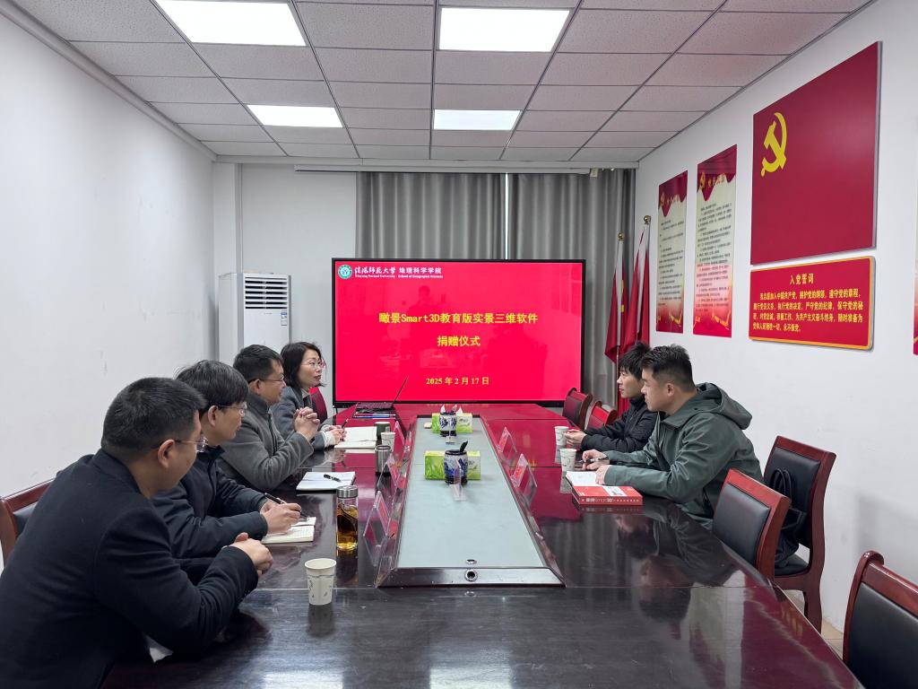 2025年2月17日,瞰景科技发展有限公司软件捐赠仪式在理科楼南楼403会议室举行。瞰景科技河南总代理代表王旭华、技术工程师韩旭东,RM365英国官网副经理闫军辉、潘晓芳,地理信息科学系主任张兴国老师和谢文全老师出席活动,仪式由潘晓芳主持。