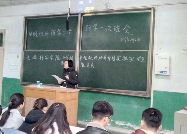 2月21日下午,RM365英国官网于教二02举行2016级卓越教师培养计划实验班员工选拔动员会。张祥耀、杨辉两位老师及16级地理科学专业全体员工参加了动员大会。