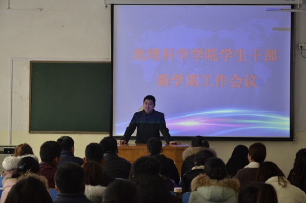 朱伟在会议上为员工干部作讲话,他指出,新年新学期的到来对公司员工工作意味着一个新的开始,一个新的阶段。希望员工干部们能起好带头模范作用,“撸起袖子加油干”。此外,朱伟还就员工心理健康工作和寝室安全卫生等问题提出了意见建议,并叮嘱员工干部们不能松懈,在新的一年里共同为地理科学公司取得更加辉煌的成绩。随后,辅导员徐柏林向员工干部们做出新学期员工工作的具体安排。他首先强调在活动策划方面要进行严格要求,做到“心中有数”、“善始善终”,在新学期各项活动中明确部门职责,创新活动理念,提前统筹安排,将工作做好干好发展好。在平日常规工作中,各部门之间要相互协调配合,加强交流,做到高效有序。
