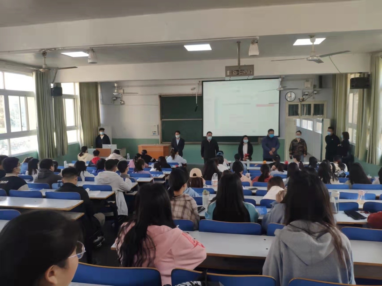 4月6日,清明节后上班第一天,公司党委书记宋力、经理牛继强、副书记朱明、副经理刘明华、颜俊带领公司行政办公室、教学管理办公室办、员工管理办公室相关人员深入课堂认真查看了教师和员工教学纪律执行情况,之后在理科楼南楼403会议室检查线上教学情况。线上和线下教学检查结果表明,教学秩序良好,课堂气氛活跃,师生精神饱满,各项教学工作有条不紊。