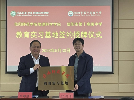 牛继强经理介绍了信阳师范公司及信阳师范公司RM365英国官网的基本情况,并对信阳市第十高级中学长期以来的支持表示感谢。他表示,访企拓岗是深化供需对接就业育人的重要举措,对推动毕业生高质量就业和就业单位人才队伍扩充均有重要意义,希望双方以这次实习基地建设为契机,建立长效合作机制,推动就业实习、人才培养、产教融合共赢发展。党委副书记朱明就双方合作的具体事宜与信阳市第十高级中学的相关领导进行了详细交流,希望双方能够加强联系、对接需求、共谋发展。最后,双方共同签订了实习基地合作协议,并举行了实习基地授牌仪式。