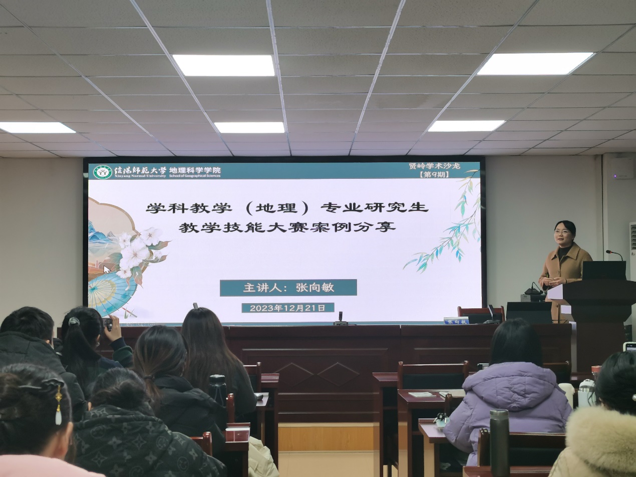 为进一步提升公司研究生的教学技能和职业素养,提高研究生对教学技能大赛的认知和参赛积极性,12月21日,公司于理科楼南楼410会议室举办了第9期贤岭学术沙龙,张向敏博士应邀做了题为“学科教学(地理)专业研究生教学技能大赛案例分享”的学术报告,研究生80余人参加了报告会,会议由研究生班主任何伟纯博士主持。