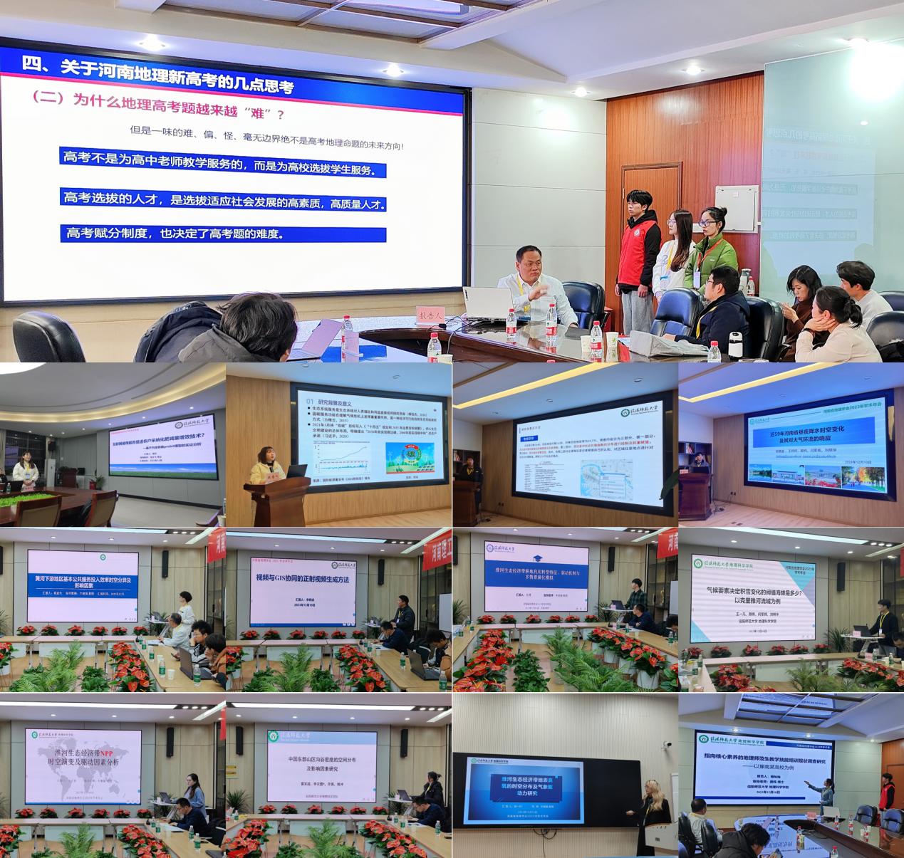 会议期间,公司牛继强教授做了题为“新理念 新高考”的学术报告。研究生孙博、张一丹、刘瞳晖、程启先、雷笑迎、王一凡、闫白冰、李晓迪、王子羽、黄欢、杨灿灿和本科生姬嘉盛等12人围绕大会主题分别作了《淮河生态经济带耕地利用转型特征、驱动机制与多情景演化模拟》《Surface Ozone in the Huaihe River Economic Belt, China:Spatial-Temporal Variations and Meteorological Driving Force》《固碳服务供需视角下大别山水土保持功能区碳平衡研究》《黄河下游地区基本公共服务效率时空分异及影响因素》《中国东部山区沟谷密度的空间分布与影响因素研究》《气候要素决定积雪变化的阈值海拔是多少?以克里雅河流域为例》《基于SoIVES模型的生态系统服务社会价值评估——以淮河源地区为例》《视频与GIS协同的正射视频生成方法》《淮河生态经济带NPP时空演变及驱动因素分析》《互联网使用能否促进农户采纳化肥减量增效技术?——基于内生转换Probit模型的实证分析》《指向核心素养的地理师范生教学技能培训现状调查研究》及《近59年河南省昼夜降水时空变化及其对大气环流的响应》的学术报告。12个报告涵盖了地理学、资源与环境以及学科教学(地理)等学科,视角新颖、内容丰富,引起了与会专家的浓厚兴趣,得到了省内外学者的高度评价。