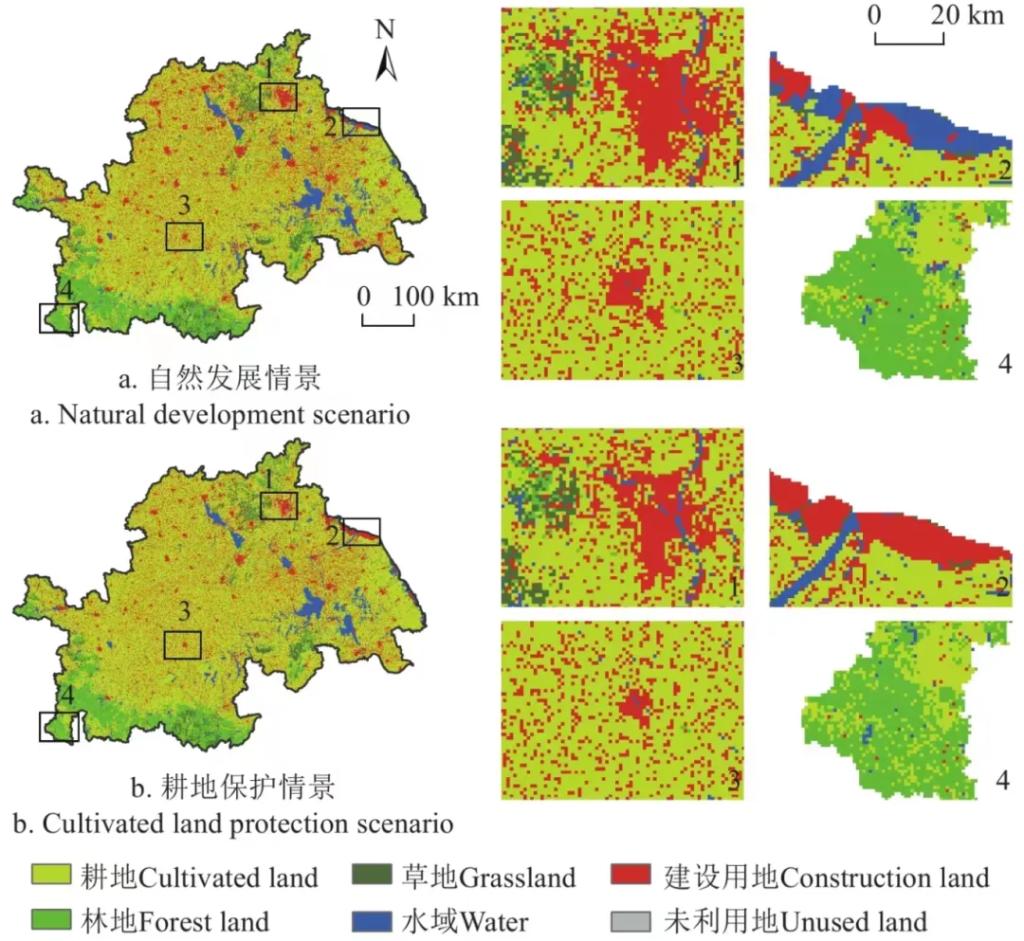 (4)在自然发展情景下,淮河生态经济带建设用地将不断侵占其他用地;实施耕地保护,因地制宜多种措施相结合可有效增加耕地面积,促进农业可持续发展。