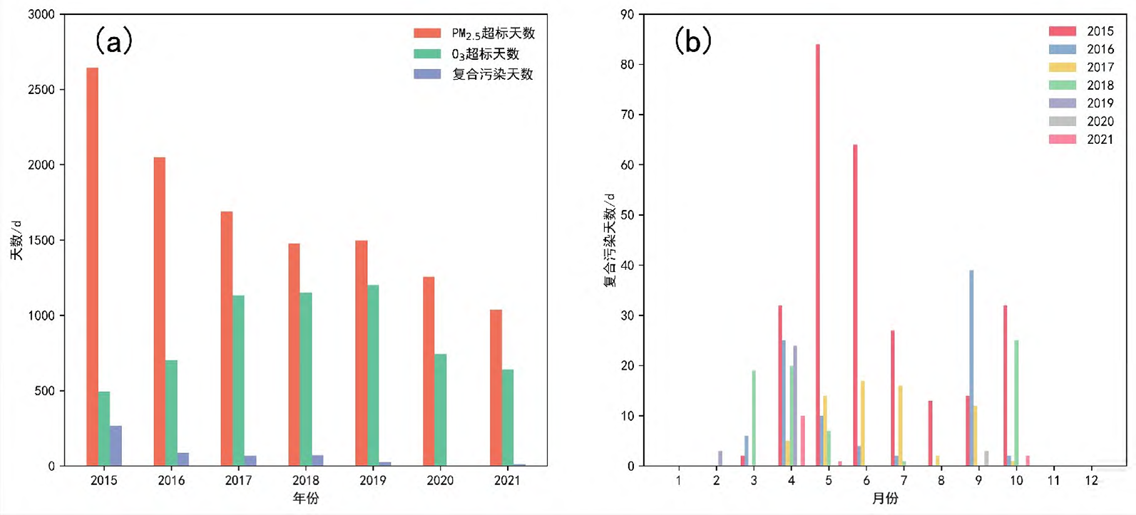 复合污染变化趋势的图表,发现2015—2021年河南省PM2.5-
