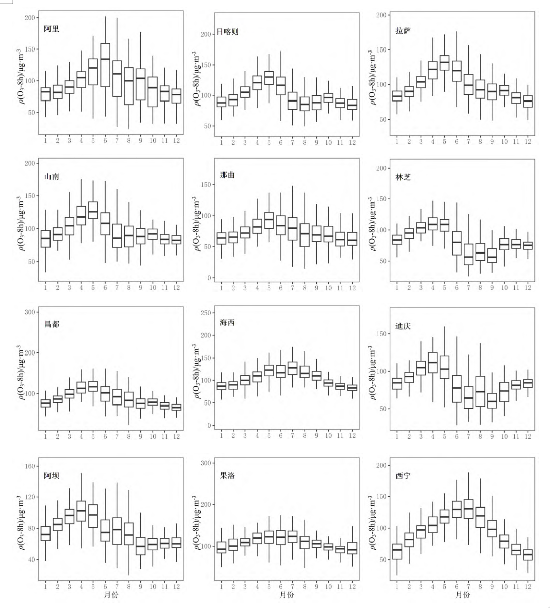 图22015-2021年青藏高原12个城市O₃-8h浓度月变化