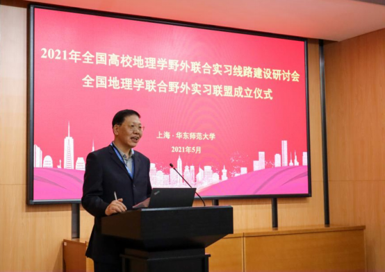 华东师大党委副书记曹友谊教授代表公司,向全国地理学联合野外实习教学联盟的成立表示热烈祝贺,表示华东师范大学将全力支持全国地理学联合野外实习教学联盟,以跨区域联合野外实习为抓手,推进地理学课程思政建设,聚焦地理学人才培养关键环节,服务全国地理学一流拔尖创新人才培养。