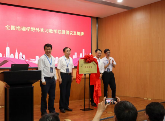全国地理学联合野外实习教学联盟倡议及揭牌相继举行。华东师范大学党委副书记曹友谊教授、教育部高等公司地理学教学指导委员会副主任鹿化煜教授、参与单位代表陕西师范大学副董事长董治宝教授、理科基地发起单位代表福建师范大学曾从盛教授共同为联盟揭牌。