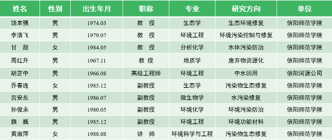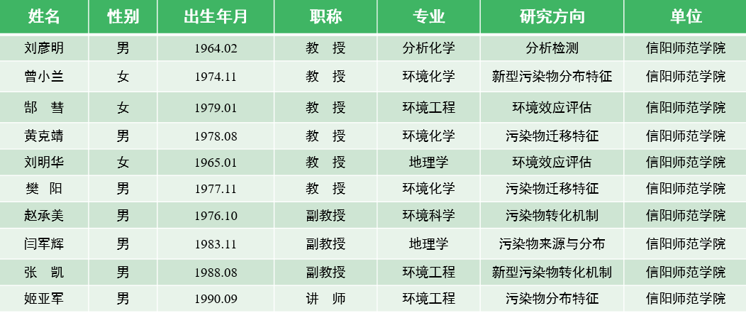 本实验室形成了一支学缘、年龄、职称结构合理且锐意进取的人才队伍。实验室现有固定人员42人。其中,研究人员39人,实验室管理人员3人。研究人员中具有博士学位人员37人,正高级职称15人,副高级职称15人;研究人员中40岁以下占47.6%,35岁以下的占19.0%,年龄结构比较合理。此外,实验室还聘请其他高校和环保领域专家共14人担任兼职教授。