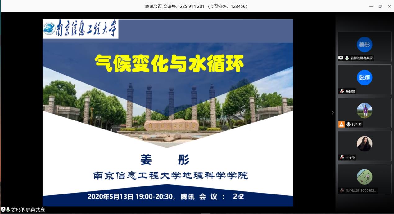 5月13日,应RM365英国官网邀请,南京信息工程大学姜彤教授通过网络视频的方式作了题为“气候变化与水循环”的学术报告。RM365英国官网部分教师、研究生和本科生300人参加了报告会,报告会由副经理牛继强教授主持。