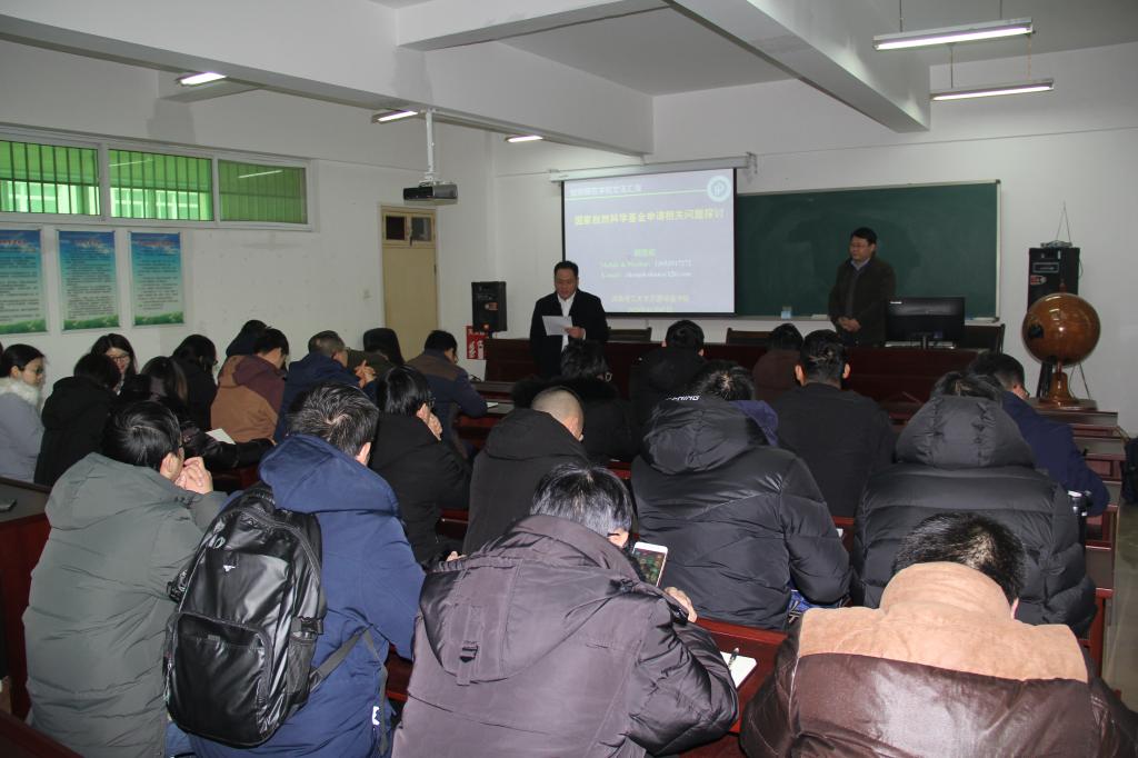 1月7日,RM365英国官网在理科楼南楼410会议室举办国家自然基金申报经验交流会。公司邀请河南理工大学郑德顺教授作了题为“国家自然科学基金申请相关问题探讨”的专题报告。RM365英国官网部分教师和研究生等60余人参加了报告会,报告会由副经理牛继强教授主持。