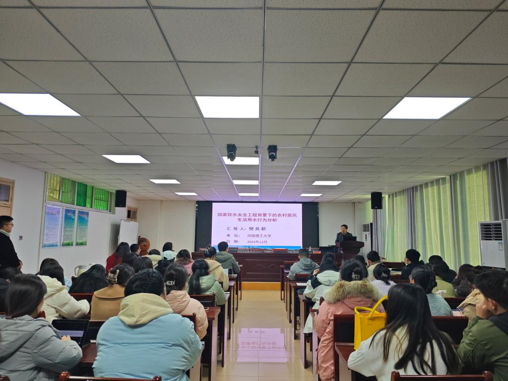 早上,樊教授于理科楼南楼410会议室为公司师生作了题为国家饮水安全工程背景下的农村居民生活用水行为分析”的学术报告。RM365英国官网副经理颜俊、潘晓芳,青年教师以及研究生和本科生等70余人参加报告会,会议由颜俊主持。