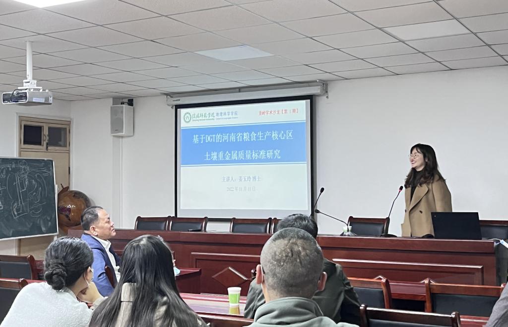 11月11日下午,RM365英国官网于理科楼410会议室举办了第一期贤岭学术沙龙,邀请自然地理学专业姜玉玲博士做了题为“基于DGT的河南省粮食生产核心区土壤重金属质量标准研究”的学术报告。经理牛继强教授、青年教师和硕士研究生50余人参加了报告会,会议由科研秘书闫军辉副教授主持。